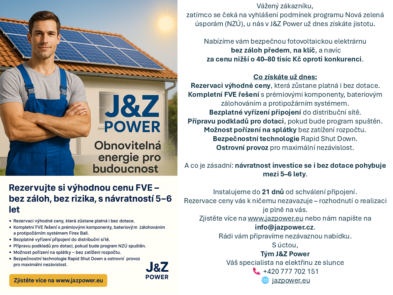 Fotovoltaika J&Z Power bez platby předem