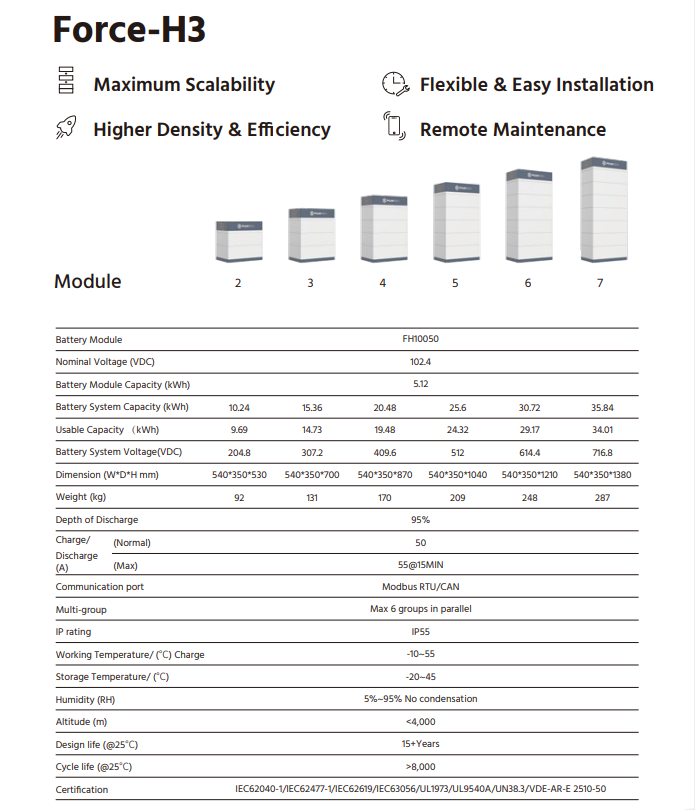 Force H3 navíc umožňuje funkci paralelního provozu více bateriových věží, což vám poskytuje obrovskou flexibilitu při návrhu a konfiguraci systému.